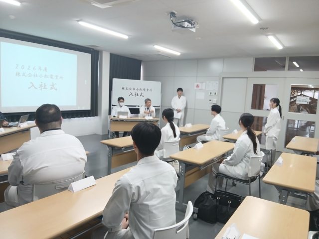 4月1日より小松電業所に新たに9人の新入社員が入社しました。